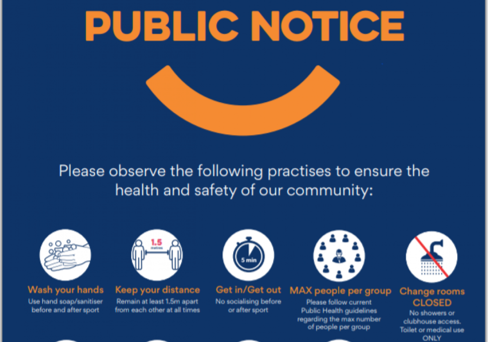 • Players are to come already prepared to train – changing rooms will not be in use.